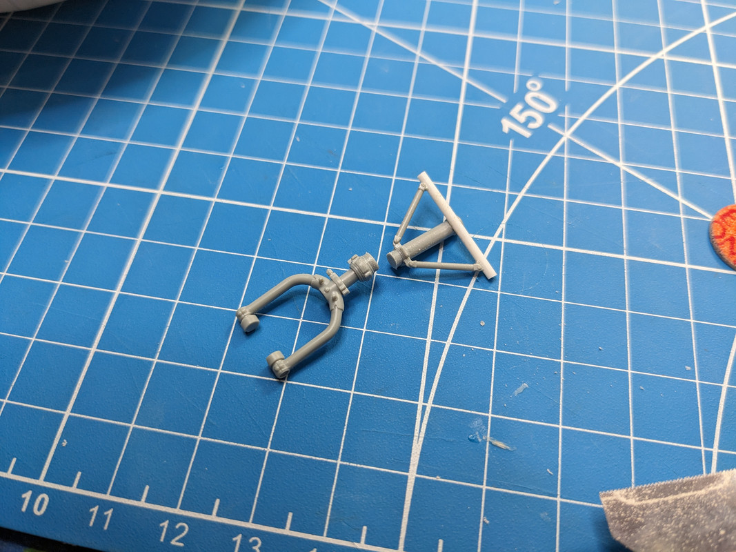 ChuckD Posted June 17, 2024 Posted June 17, 2024 Just a little time at the bench today. Full disclosure, Tom, you may want to skip this post with all the work you put into the nose gear. If you look at the reference photos (which I believe were taken at the same time), you'll notice the nose wheel is swung to the left. A-20s, like a lot of tricycle gear aircraft of the day had free swinging nose wheels. Steerable nose gear wasn't common then, so leaving the model's nose wheel at the default straight position just isn't going to work So, out comes the razor saw. Now, carefully drill corresponding holes and insert a small brass rod to serve as a strengthener. A little super glue and... Viola! Fundamentally, I don't think there's anything wrong with the plastic nose strut, even though I managed to snap mine off on the first build. Mine broke because it took a side load after I installed the horizontal stabilizers. If you install those, any time you set the fuselage down, it wants to rotate and it's a fight between the stabilizer and the nose strut. The former is infinitely stronger, so the nose strut will fail every time. Once the kit is assembled, the plastic gear is plenty strong enough to support the weight of the model. So, it's cool that HKM has included metal gear on the newer kits, but I don't feel it will really do much. The real weakness in the nose gear lies in the original Douglas design. It's just not very robust in that the main strut is sort of suspended and supported by smaller rods and such. At no point does the main load bearing strut attach directly to the airframe. So, the blame here lies with Douglas, not HKM. All that said, the kit gear is perfectly workable. Just be careful because it's delicate... Just like everything else in our hobby. Troy Molitor, themongoose, chaos07 and 13 others 16
